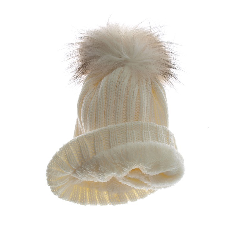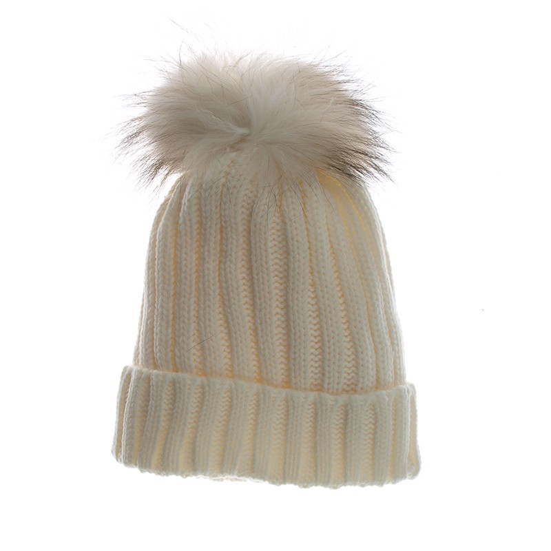 Czapka zimowa pompon duży Nicola kremowa